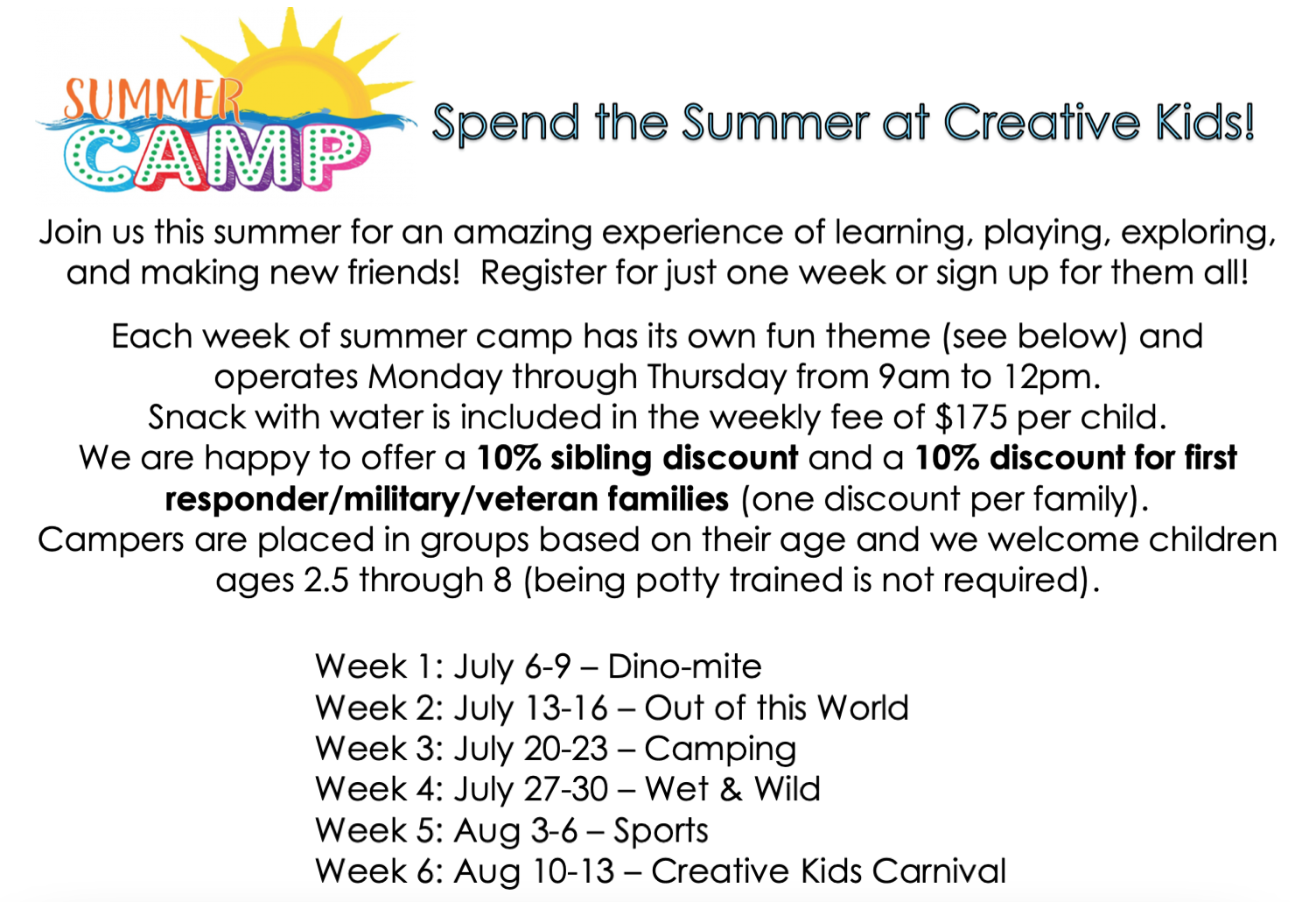 Creative Kids Preschool 2026-2027 Registration